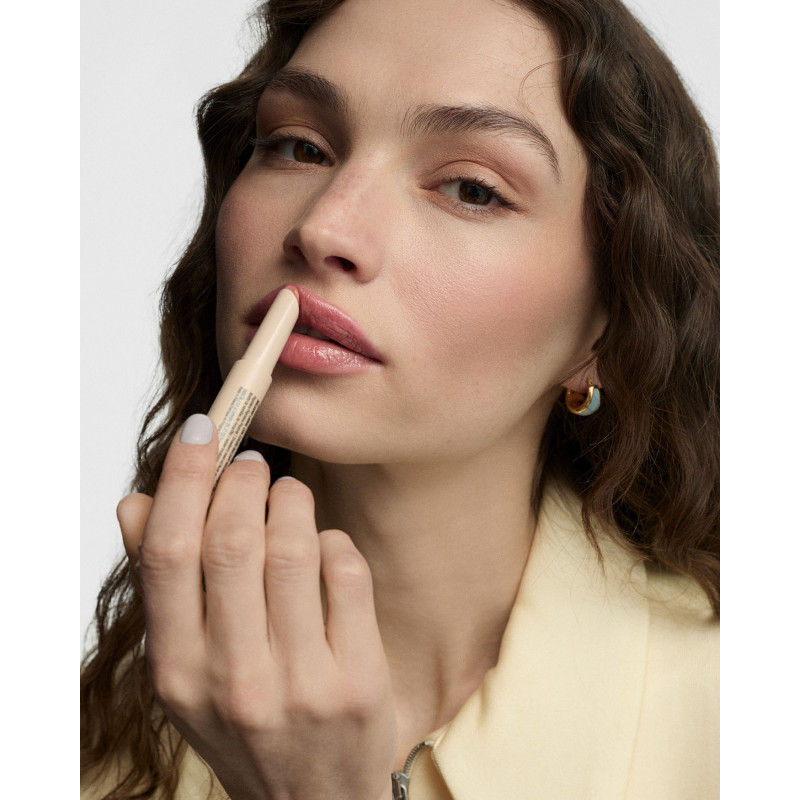 Забезпечує відчуття інтенсивного зволоження вже з першого застосування. Він пом'якшує, розгладжує та підкреслює природний колір губ, надаючи їм сяючого та живлячого ефекту. Формула містить 94% інгредієнтів натурального походження, поєднуючи догляд з делікатним фарбувальним ефектом. Кожен відтінок бальзаму може залишати ледь помітний, тимчасовий рожевий відтінок на губах після зняття завдяки барвнику, який відповідає натуральному кольору губ. Продукт доступний у зручній упаковці-клік-ручці для легкого та точного нанесення. При регулярному використанні помітно збільшує об'єм губ, забезпечуючи ефект повніших губ*. *Ефект помітний після регулярного використання протягом щонайменше 2 тижнів.
