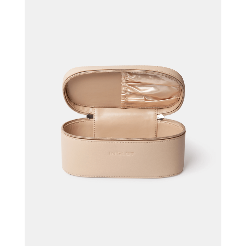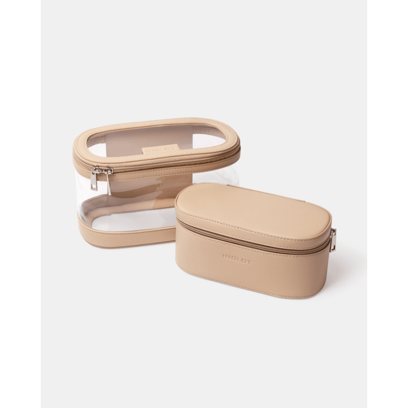 Маленька, компактна косметичка елегантного бежевого кольору дозволяє легко зберігати набір необхідної косметики та є практичним рішенням для коротких поїздок.